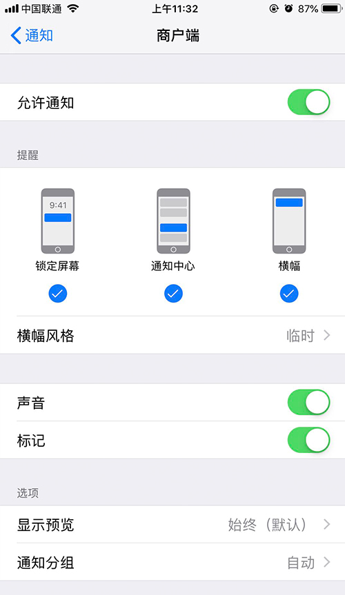 5、已經(jīng)處于開啟狀態(tài),在鎖定屏幕,通知中心,橫幅都會顯示通知的信息