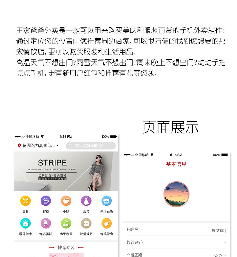 王家爸爸外賣是一款可以用來購買美味和服裝百貨的手機外賣軟件;通過定位您的位置向您推薦周邊商家,可以很方便的找到您想要的那家餐飲店,更可以購買服裝和生活用品。